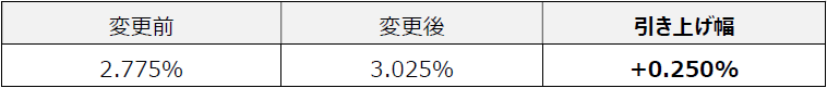 - 短期プライムレートを主要指標として参照する変動金利(住宅ローン基準金利等)についても、同日引き上げを行います。