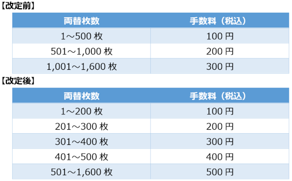 2. 改定項目 :両替機利用手数料